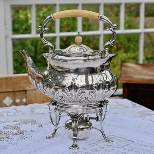 アンティーク シルバープレート製スタンドケトル シルバープレートティーケトル&スタンド elkington and company